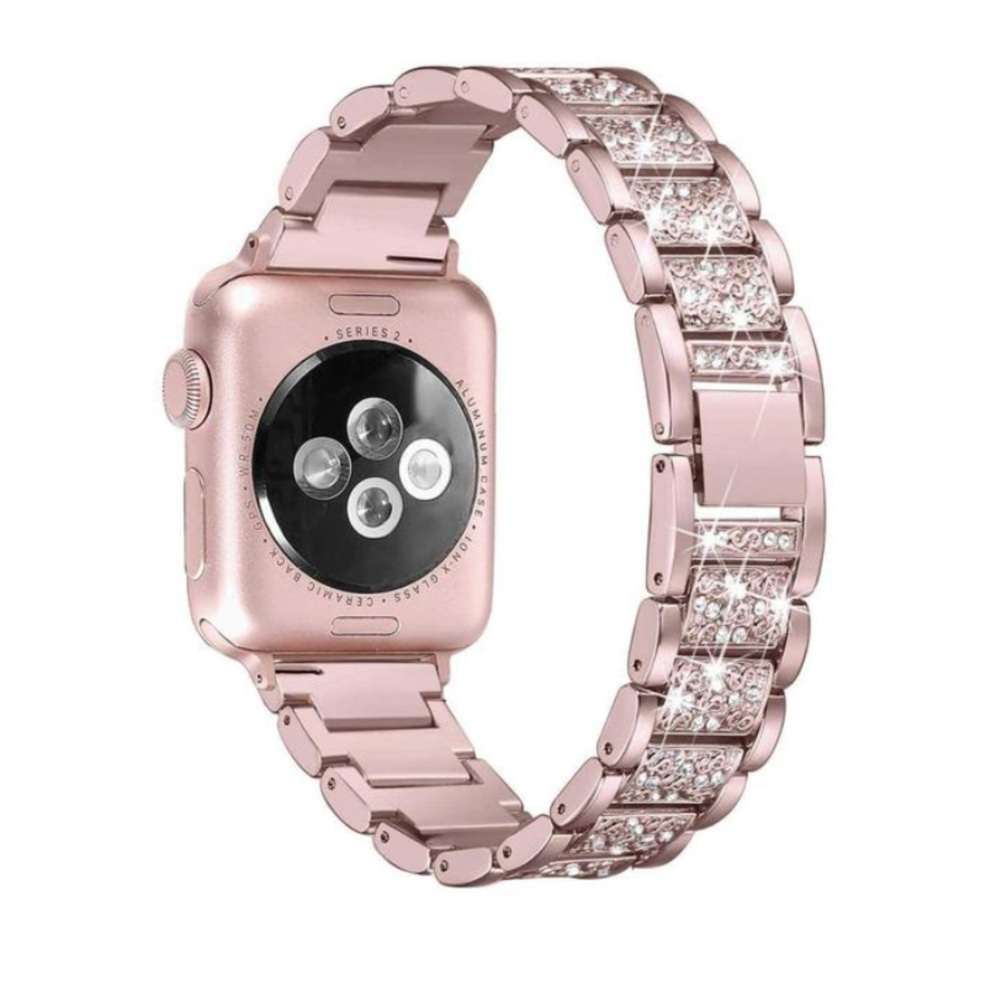 Inspired by Italian design, a classic is born. Adorned and embellished with simulant gemstones that gives it a subtle sparkle and shine. Made from high-quality stainless steel, this metal link bracelet is a timeless and durable choice for your Apple Watch. It features a sleek and sophisticated design that adds a splash of elegance to any outfit.