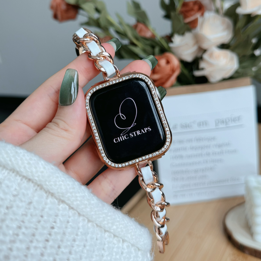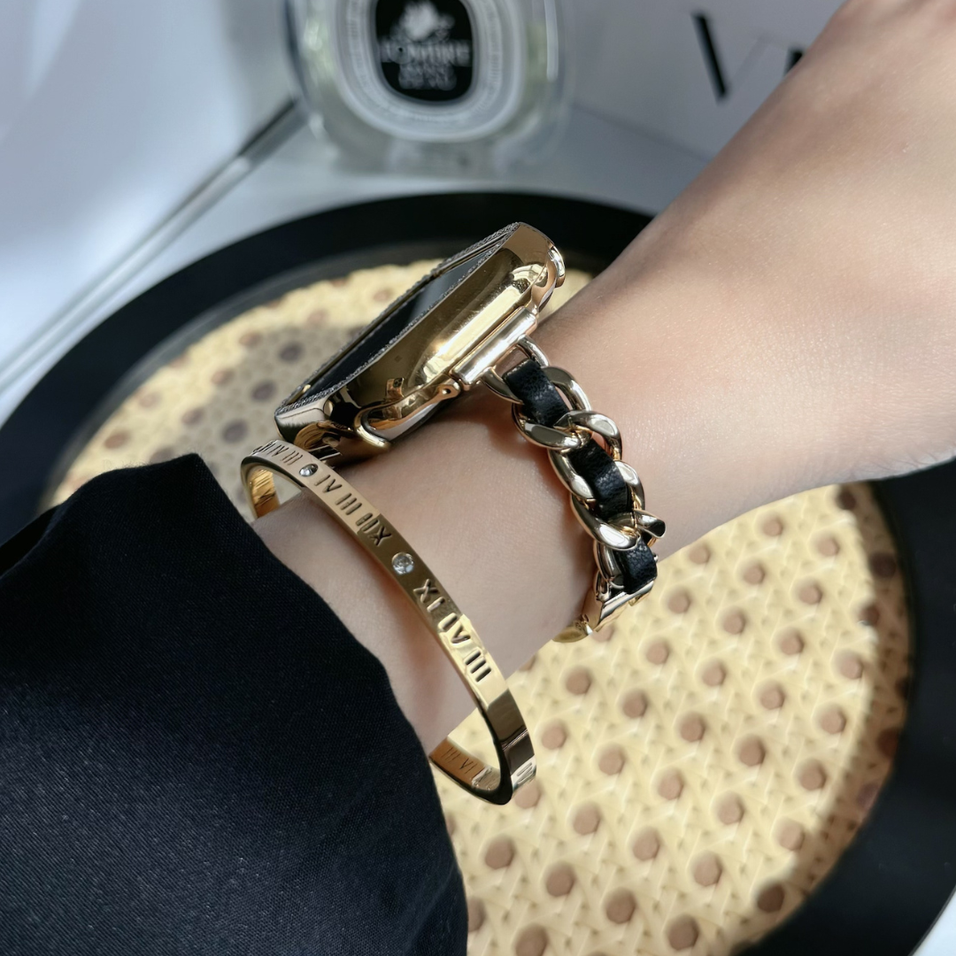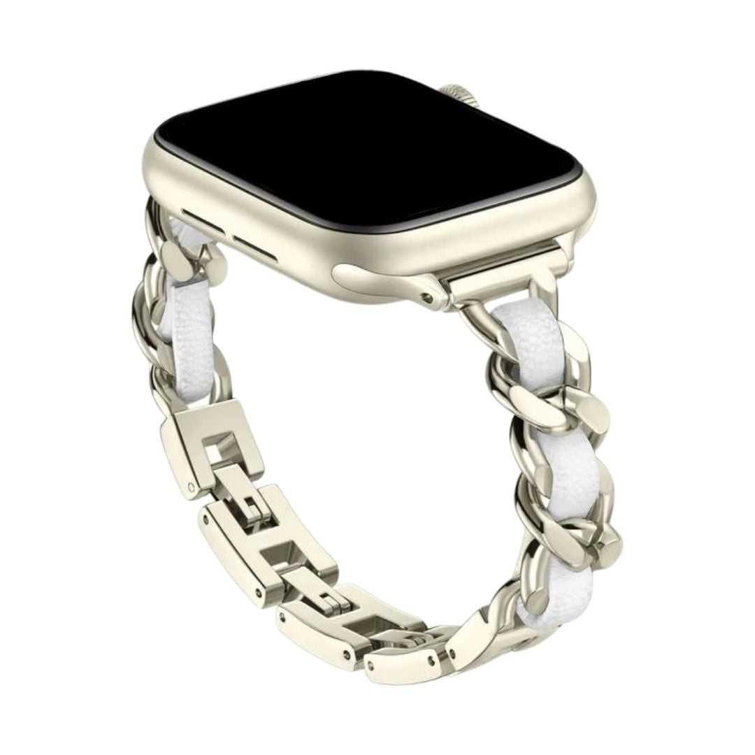 Introducing the Bellaza Slim Link – where leather meets stainless steel in a stunning interwoven design. Crafted with high-quality stainless steel lugs, this bracelet exudes elegance with a modern twist. Its weighty feel adds boldness to your wrist, while maintaining a gentle tactility. Available in a unique two-tone design, set yourself apart and discover your own Apple Watch style.