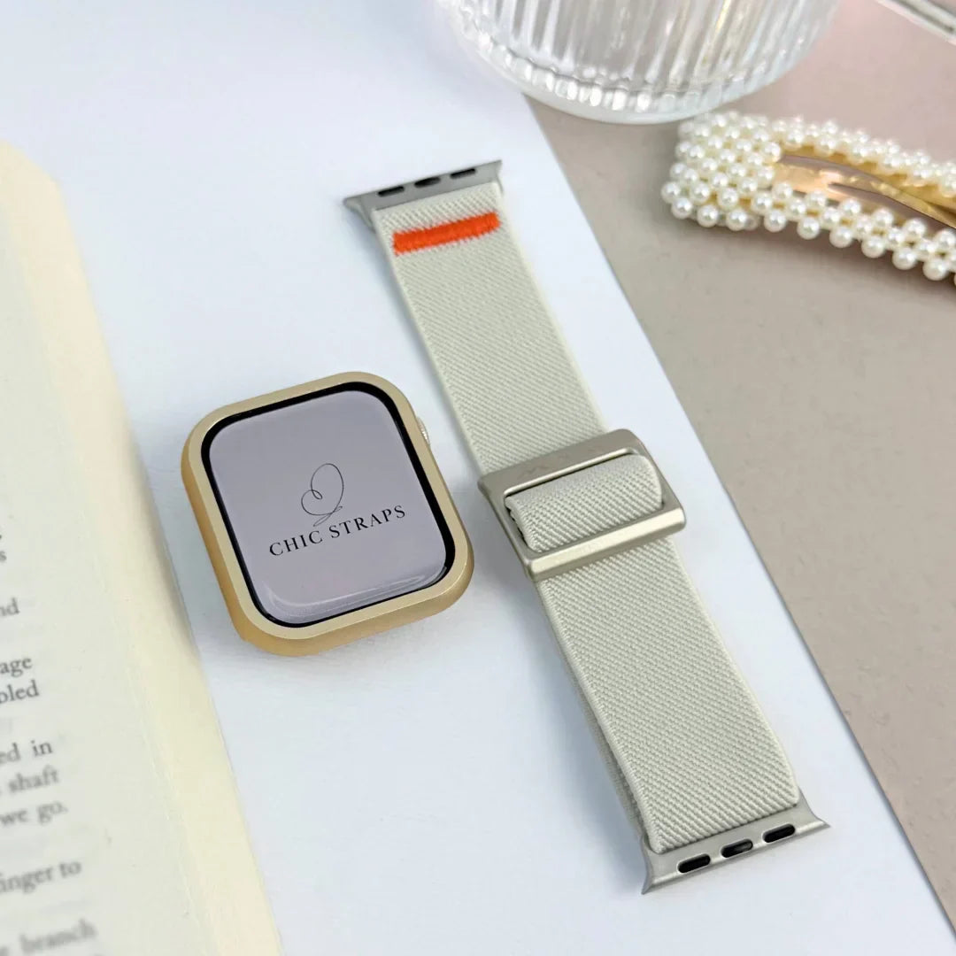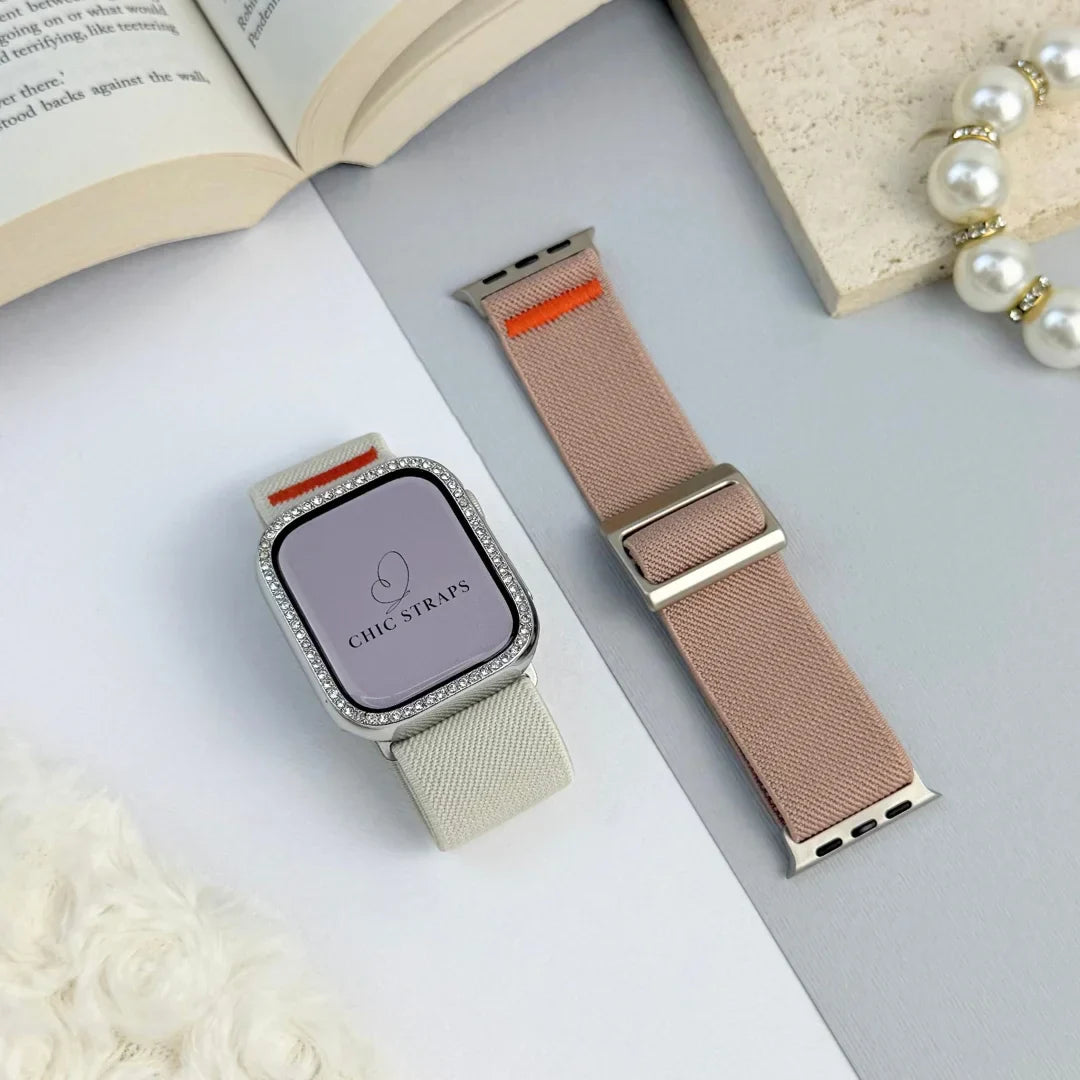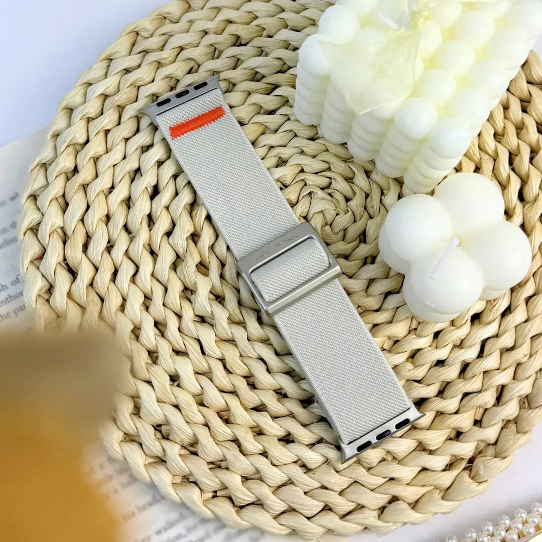 Where high-density nylon mesh meets soft stretch fabric, Hera Loop redefines comfort and style for your Apple Watch. Designed for a perfect fit, the adjustable buckle allows effortless customization—whether you prefer a snug feel or a relaxed fit. With just a gentle tug, adjust it throughout the day with ease. More than just a strap, Hera Loop is a statement of sophistication and versatility, seamlessly blending elegance and practicality for any occasion.