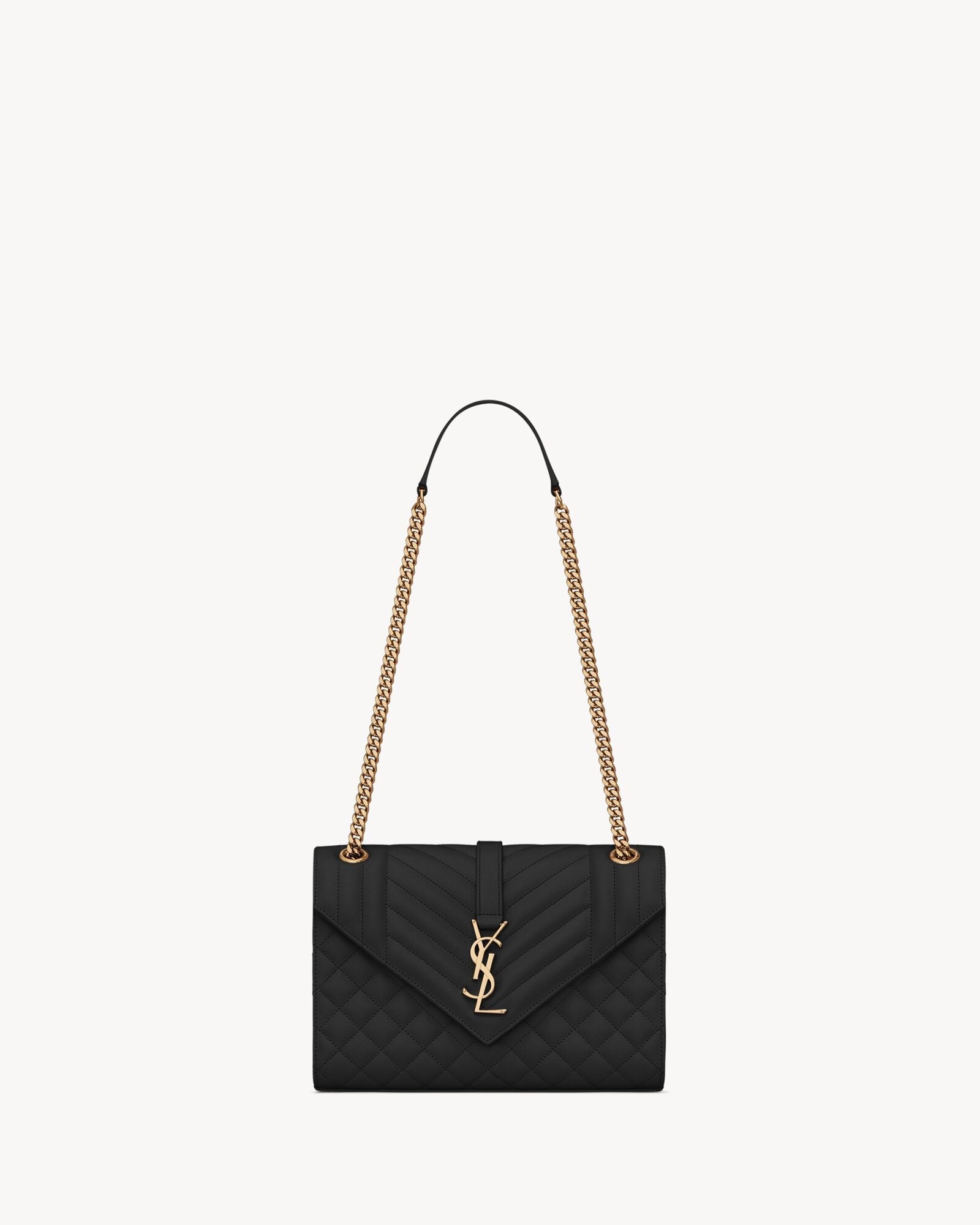 The YL-Envelope Chain Wallet is the ultimate expression of compact luxury. Crafted from high-quality leather and finished with chevron quilted overstitching, this elegant chain purse is adorned with an iconic logo in gold-toned brass, offering a timeless and instantly recognizable silhouette.